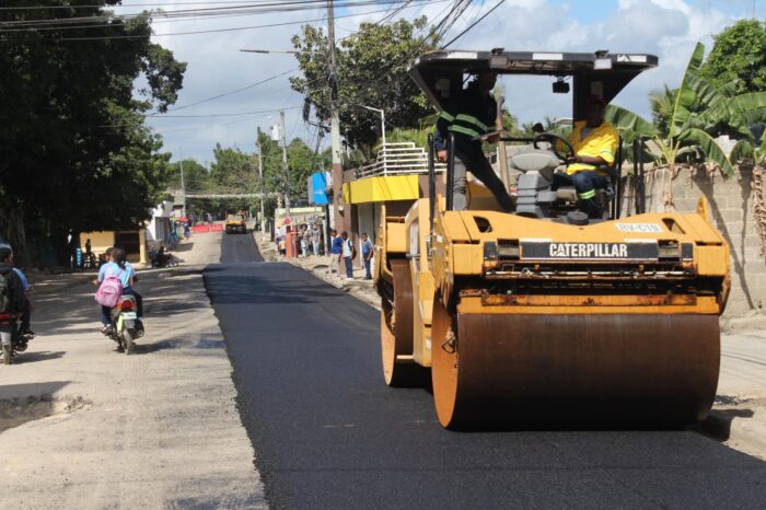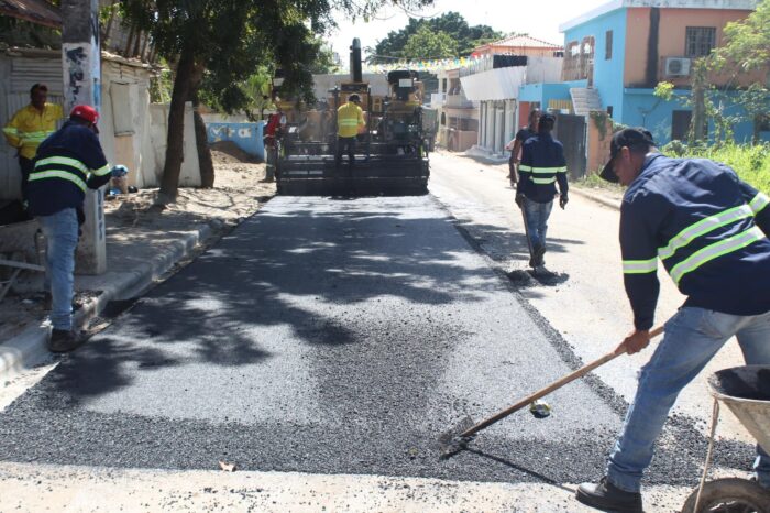 En colaboración con el Ministerio de Obras Públicas y Comunicaciones – RD continuamos asfaltando nuestro distrito. Esta vez nos encontramos en el sector