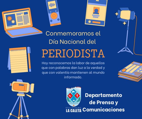 La Junta Municipal La Caleta felicita a todos los periodistas al conmemorarse hoy 5 de abril “El Día Nacional del Periodista”, cuya labor profesional y audaz, nos permite conocer los hechos de manera transparente, veraz y objetiva.
